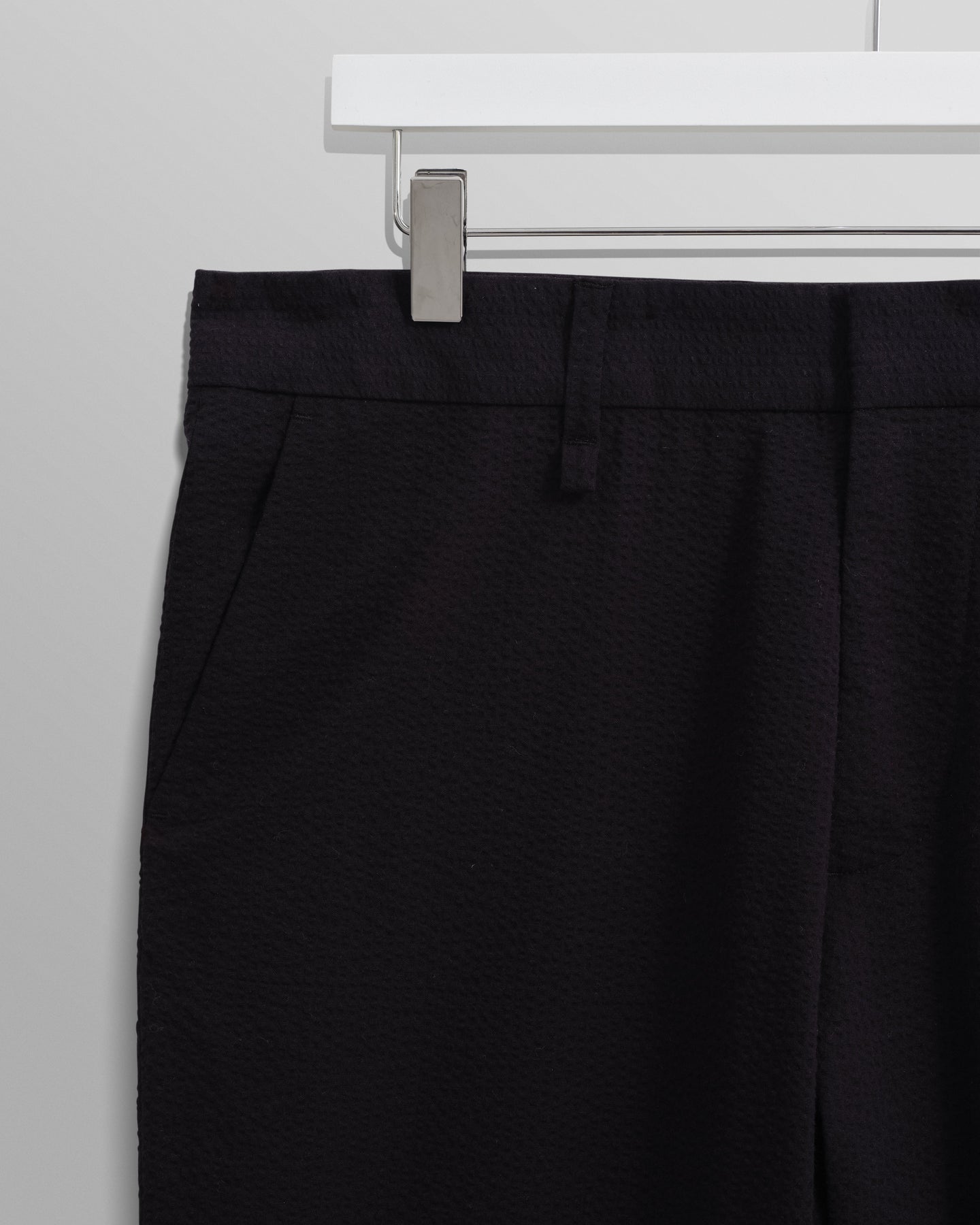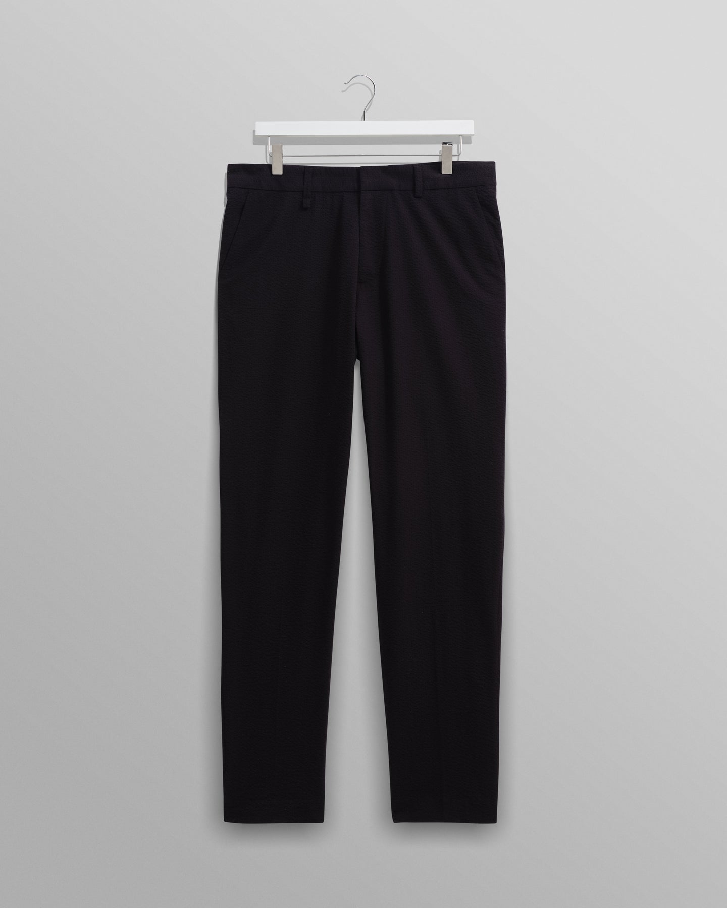 The Alp is the perfect any-occasion trouser. Designed with a timeless slim, tapered silhouette, they're half-lined and crafted from soft cotton-blend seersucker fabric for effortless elegance that suits the season's smart and casual moments. Wear these deep black trousers on their own or with the coordinating Fintry blazer to create a complete tailored look.